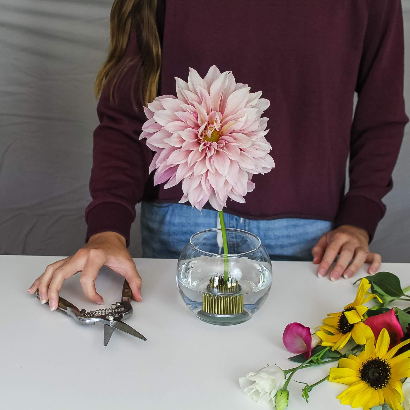 The 2½″ size fits comfortably into a wide range of standard vases, making it ideal for medium arrangements throughout your home. Durable, reusable, and foam-free, it makes floral arranging feel sturdy, intentional, and enjoyable.